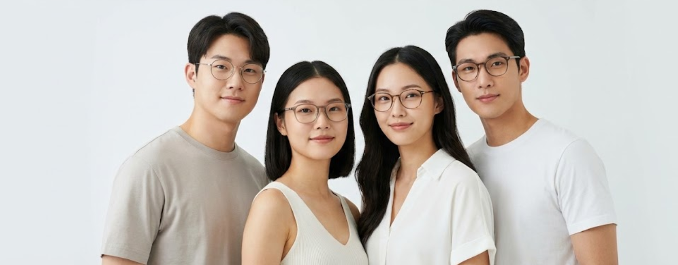 配鏡建議:上輕下重。避免上緣過於厚重的鏡框,選擇底部較寬或線條圓潤的款式來平衡寬額頭。