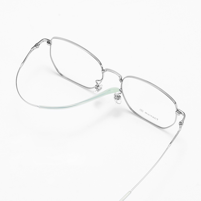 專為亞洲臉孔開發的純鈦幾何框型。137mm 的面寬設定,符合多數人的黃金比例,實測上臉服貼穩固且不挑臉型。前框採用純鈦材質,搭配具備高彈性的β鈦鏡腿,將整體重量精準控制在 10.4g,有效減輕鼻樑壓迫感。金屬表面經過 IP 真空電鍍處理,大幅提升抗汗與防腐蝕性能,確保長時間佩戴依然能維持不錯的漆面質感。