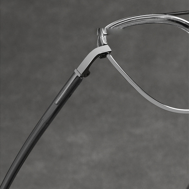 M408復古雙樑設計,精選優質合金打造 147mm 寬闊大框,不僅上臉自然顯臉小,更為寬臉帶來不夾臉的舒適體驗。表面採用真空 IP 電鍍處理,有效抗汗防腐蝕,常保細膩光澤。堅固鉸鏈搭配防滑腳套,解決鏡架滑落的問題。
